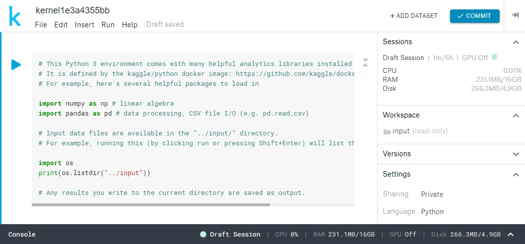 Di DS, work environment yang bakal kalian pake buat ngoding dan ngerjain soal disebut dengan notebook (notebook ini sama kyk yang kalian pakai di pengkom seperti Jupyter Notebook .ipynb). Untuk nge-run notebook, sebenernya bisa di komputer / laptop local kalian masing-masing, tapi biasanya buat ngedapetin computing power yang lebih gede dengan gratis, kalian bisa pakai notebook online seperti Kaggle Notebook dan Google Colab. Dari segi tools yang digunakan akan tergantung dengan jenis permasalahan atau soal yang kalian dapatkan. Hampir selalu dipakai di lomba-lomba tingkat mahasiswa: